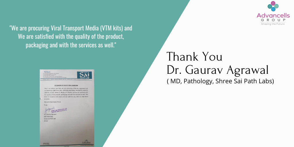 Advancells Diagnostics is the growing diagnostic services provider across India. Our mission is to improve patient access to healthcare by making it more affordable, transparent, and trustworthy. Our company is dedicated, competent, and passionate about providing excellent diagnostic tools possible for hospitals and research. We strive to bring the best diagnostic services to our patients, colleagues, partners, and customers all across the world. Advancells Diagnostics provides a wide range of products, including COVID-19 diagnostic solutions as a consolidated approach to healthcare. Advancells Diagnostics is a primary manufacturer of Viral Transport Media (VTM) kits, a range of Agar Plates, Bone Marrow Concentrator (BMC) kits, Platelet-Rich Plasma(PRP) kits and Synojel. All our products are CE marked and accredited by the Indian Council of Medical Research (ICMR). We aim to bridge the gap by offering a wide variety of high-quality clinical diagnostics and point of care products to our specialized distributors.